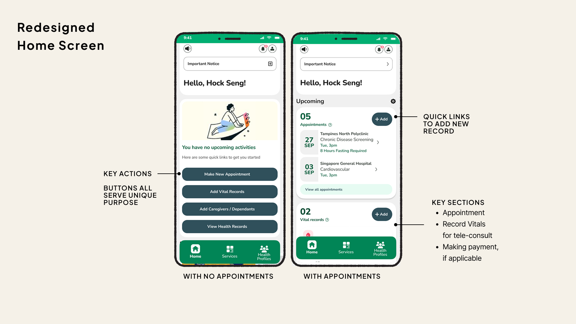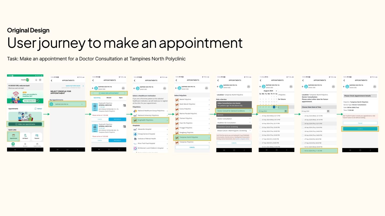 The existing appointment flow in HealthHub is riddled with unnecessary steps and interface redundancies—leading to confusion and task abandonment, particularly for seniors and users with lower digital literacy.