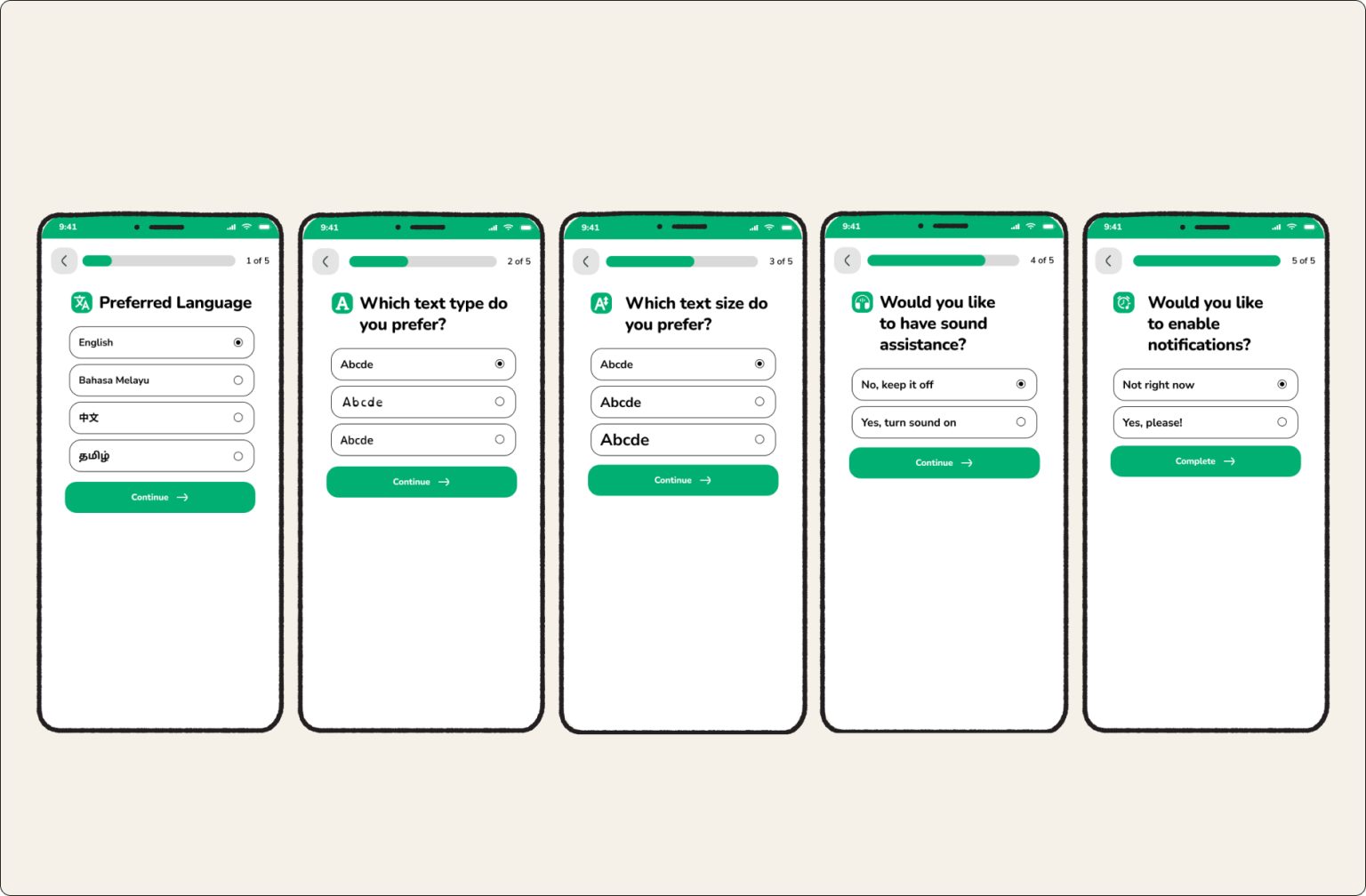 – Ms Wong, 72“For example, I don’t know what to click next, can I get some help. Could be a clickable (in-app) help, a follow-up call (from the staff)… or even through a chatbot.” – Mr Tan, 65