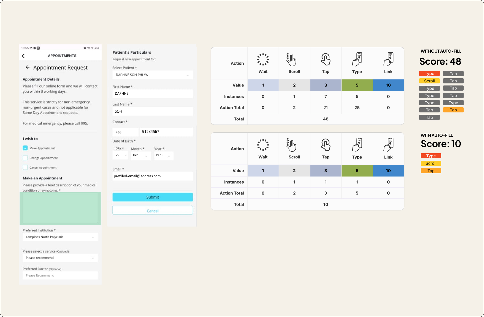 Despite having access to user information via Singpass, HealthHub still requires users to manually fill in their particulars in the appointment request form—a tedious and error-prone experience, especially for seniors.